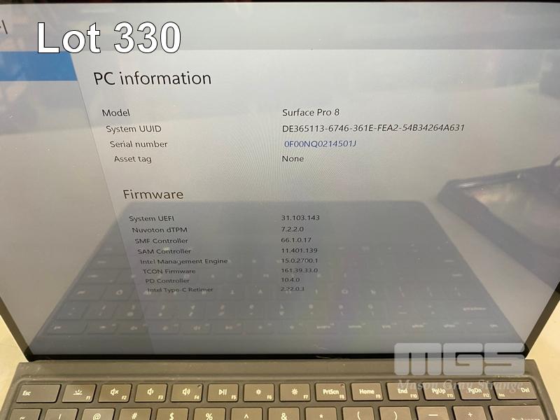 TABLET PC, MICROSOFT SURFACE PRO 8, MODEL 1982, CORE i5 1145G7 (11TH GEN) @ 2.6GHz, 16GB DDR4 RAM, 256GB NVMe M.2 SSD, 13" TOUCHSCREEN (2880x1920), INTEL IRIS Xe GRAPHICS, Wi-Fi, CELLULAR, BLUETOOTH, WINDOWS 11 PRO INSTALLED, KEYBOARD TYPE COVER, CASE & POWER SUPPLY S/N:0F00NQ0214501J