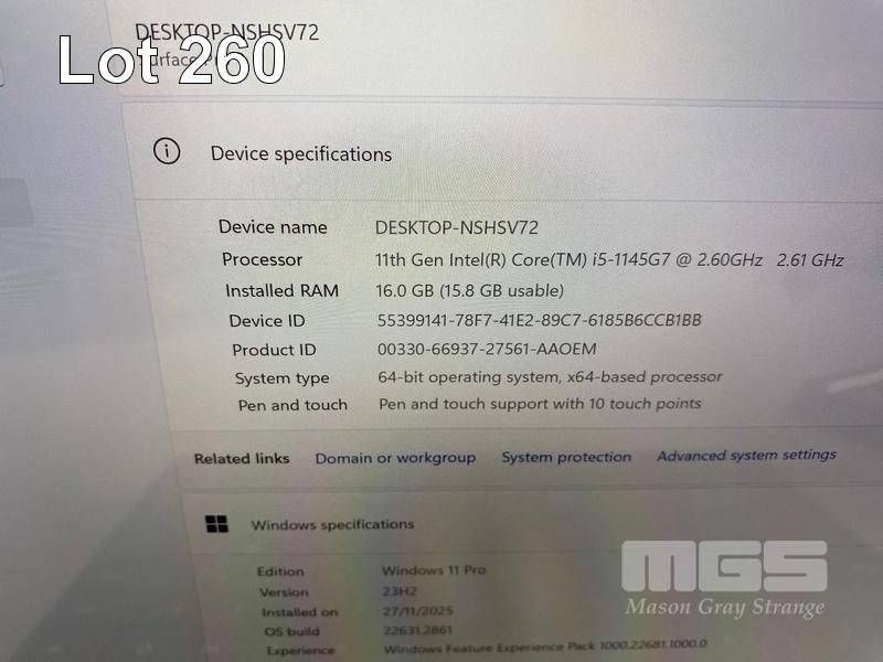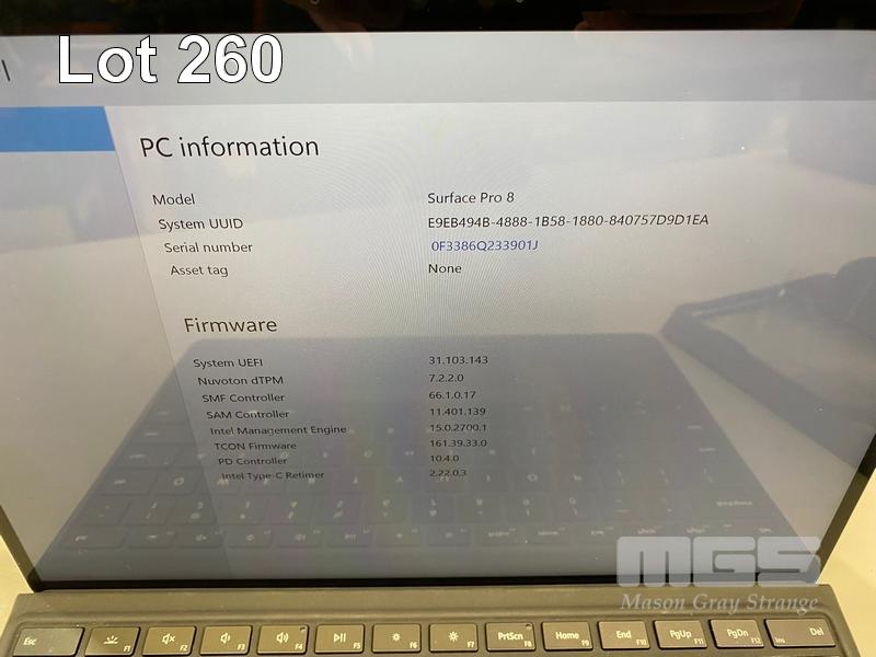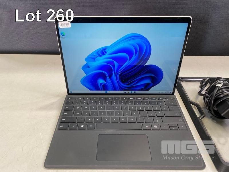 TABLET PC, MICROSOFT SURFACE PRO 8, MODEL 1982, CORE i5 1145G7 (11TH GEN) @ 2.6GHz, 16GB DDR4 RAM, 256GB NVMe M.2 SSD, 13" TOUCHSCREEN (2880x1920), INTEL IRIS Xe GRAPHICS, Wi-Fi, CELLULAR, BLUETOOTH, WINDOWS 11 PRO INSTALLED, KEYBOARD TYPE COVER, CASE & POWER SUPPLY S/N:0F3386Q233901J