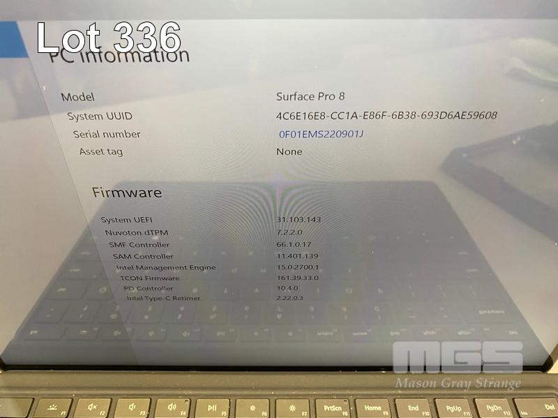 TABLET PC, MICROSOFT SURFACE PRO 8, MODEL 1982, CORE i5 1145G7 (11TH GEN) @ 2.6GHz, 16GB DDR4 RAM, 256GB NVMe M.2 SSD, 13" TOUCHSCREEN (2880x1920), INTEL IRIS Xe GRAPHICS, Wi-Fi, CELLULAR, BLUETOOTH, WINDOWS 11 PRO INSTALLED, KEYBOARD TYPE COVER, CASE & POWER SUPPLY S/N:0F01EMS220901J