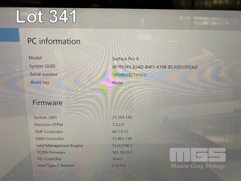 TABLET PC, MICROSOFT SURFACE PRO 8, MODEL 1982, CORE i5 1145G7 (11TH GEN) @ 2.6GHz, 16GB DDR4 RAM, 256GB NVMe M.2 SSD, 13" TOUCHSCREEN (2880x1920), INTEL IRIS Xe GRAPHICS, Wi-Fi, CELLULAR, BLUETOOTH, WINDOWS 11 PRO INSTALLED, KEYBOARD TYPE COVER, CASE & POWER SUPPLY S/N:0F00NXB214501J