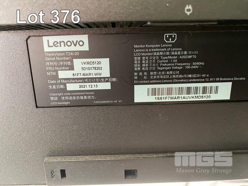 MONITOR, LENOVO THINKVISION T24i-20 23.8" IPS FHD LED WIDESCREEN, HDMI, DISPLAYPORT, VGA (WITH CABLES) (NO HDMI CABLE) S/N:1S61F7MAR1AUVKMD5120