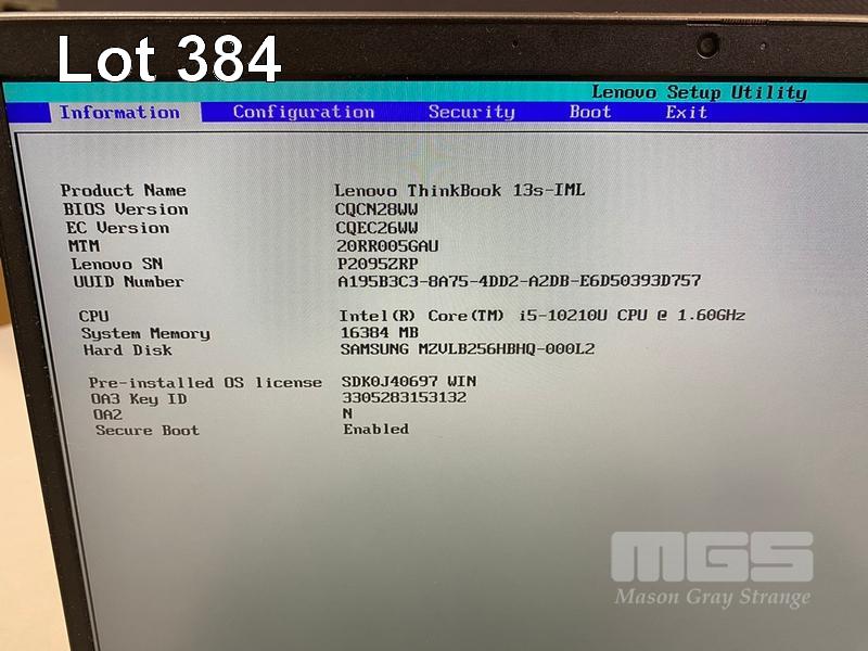 LAPTOP, LENOVO THINKBOOK 13s-IML, TYPE 20RR, CORE i5 10210U (10TH GEN) @ 1.6GHz, 16GB DDR4 RAM, 256GB NVMe M.2 SSD, 13.3" WIDESCREEN (1920x1080), INTEL UHD GRAPHICS, Wi-Fi, BLUETOOTH, WINDOWS 11 PRO INSTALLED & POWER SUPPLY S/N:P2095ZRP