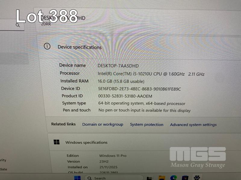 LAPTOP, LENOVO THINKBOOK 13s-IML, TYPE 20RR, CORE i5 10210U (10TH GEN) @ 1.6GHz, 16GB DDR4 RAM, 256GB NVMe M.2 SSD, 13.3" WIDESCREEN (1920x1080), INTEL UHD GRAPHICS, Wi-Fi, BLUETOOTH, WINDOWS 11 PRO INSTALLED & POWER SUPPLY S/N:P2095ZSW