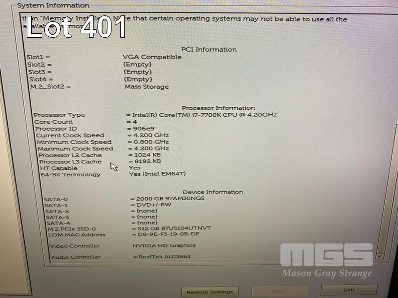 MINI-TOWER PC, DELL PRECISION TOWER 3620 WORKSTATION, CORE i7 7700K (7TH GEN) @ 4.2GHz, 32GB DDR4 RAM, 512GB NVMe M.2 SSD, 2TB SATA HDD, DVD-RW, 6GB NVIDIA GEFORCE GTX 1060 VIDEO, WINDOWS 10 PRO INSTALLED, KEYBOARD & MOUSE S/N:4PSL9M2