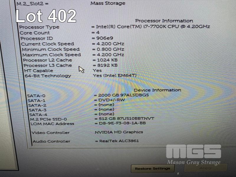 MINI-TOWER PC, DELL PRECISION TOWER 3620 WORKSTATION, CORE i7 7700K (7TH GEN) @ 4.2GHz, 32GB DDR4 RAM, 512GB NVMe M.2 SSD, 2TB SATA HDD, DVD-RW, 6GB NVIDIA GEFORCE GTX 1060 VIDEO, WINDOWS 10 PRO INSTALLED, KEYBOARD & MOUSE S/N:4NTL9M2