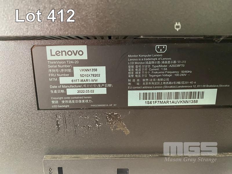 MONITOR, LENOVO THINKVISION T24i-20 23.8" IPS FHD LED WIDESCREEN, HDMI, DISPLAYPORT, VGA (WITH CABLES) (NO HDMI CABLE) S/N:1S61F7MAR1AUVKNN1358