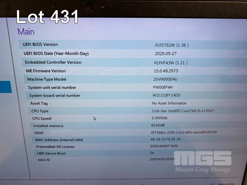 LAPTOP, LENOVO THINKPAD L13 Gen2, TYPE 20VH, CORE i5 1135G7 (11TH GEN) @ 2.4GHz, 8GB DDR4 RAM, 256GB NVMe M.2 SSD, 13.3" TOUCHSCREEN (1920x1080), INTEL IRIS Xe GRAPHICS, Wi-Fi, BLUETOOTH, WINDOWS 11 PRO INSTALLED (NO USB-C POWER SUPPLY) (NOTE: DAMAGE TO CASING, SPOT ON SCREEN) S/N:PW00EP4H