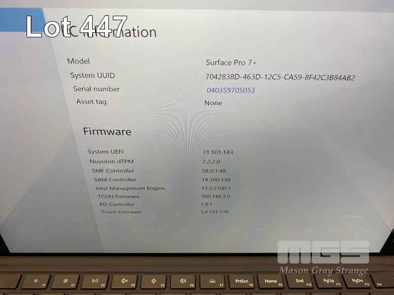 TABLET PC, MICROSOFT SURFACE PRO 7+, MODEL 1961, CORE i5 1135G7 (11TH GEN) @ 2.4GHz, 16GB DDR4 RAM, 256GB NVMe M.2 SSD, 12.3" TOUCHSCREEN (2736x1824), INTEL IRIS Xe GRAPHICS, Wi-Fi, CELLULAR, BLUETOOTH, WINDOWS 11 PRO INSTALLED, KEYBOARD TYPE COVER, CASE & POWER SUPPLY S/N:040359705053