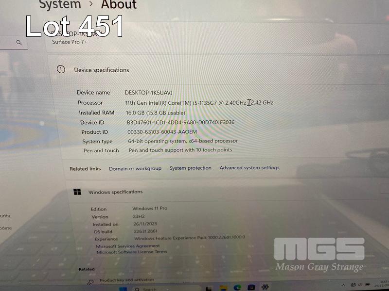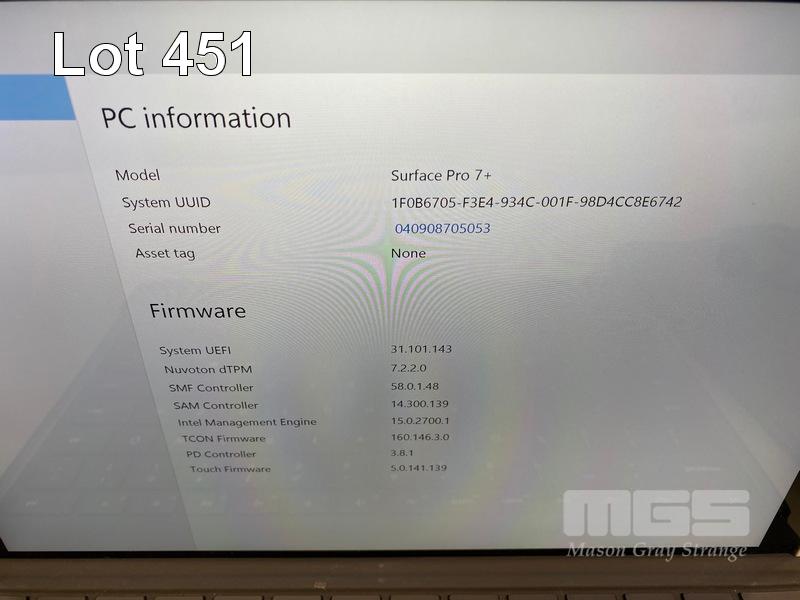 TABLET PC, MICROSOFT SURFACE PRO 7+, MODEL 1961, CORE i5 1135G7 (11TH GEN) @ 2.4GHz, 16GB DDR4 RAM, 256GB NVMe M.2 SSD, 12.3" TOUCHSCREEN (2736x1824), INTEL IRIS Xe GRAPHICS, Wi-Fi, CELLULAR, BLUETOOTH, WINDOWS 11 PRO INSTALLED, KEYBOARD TYPE COVER, CASE & POWER SUPPLY S/N:040908705053