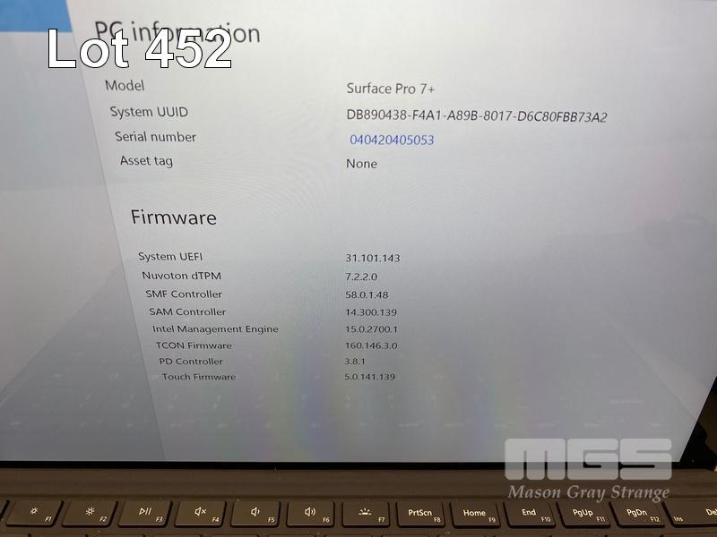 TABLET PC, MICROSOFT SURFACE PRO 7+, MODEL 1961, CORE i5 1135G7 (11TH GEN) @ 2.4GHz, 16GB DDR4 RAM, 256GB NVMe M.2 SSD, 12.3" TOUCHSCREEN (2736x1824), INTEL IRIS Xe GRAPHICS, Wi-Fi, CELLULAR, BLUETOOTH, WINDOWS 11 PRO INSTALLED, KEYBOARD TYPE COVER, CASE & POWER SUPPLY S/N:040420405053