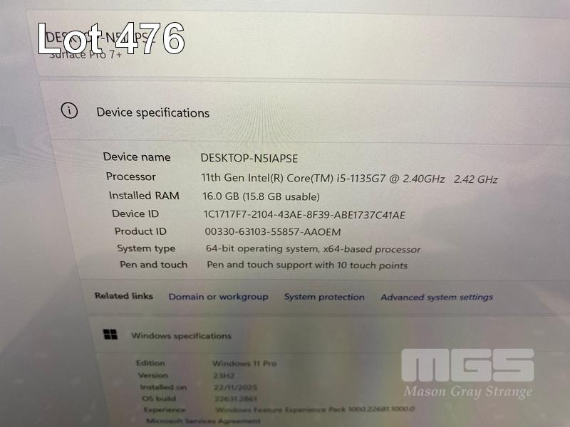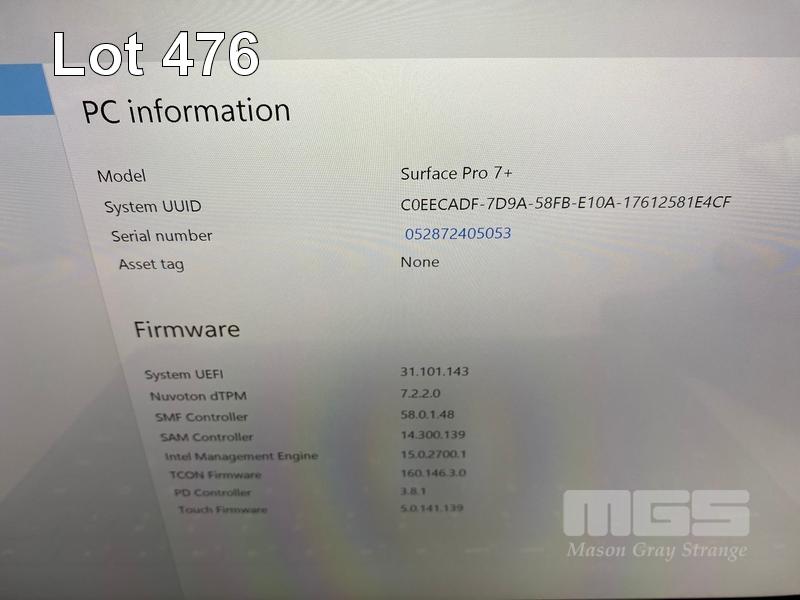 TABLET PC, MICROSOFT SURFACE PRO 7+, MODEL 1961, CORE i5 1135G7 (11TH GEN) @ 2.4GHz, 16GB DDR4 RAM, 256GB NVMe M.2 SSD, 12.3" TOUCHSCREEN (2736x1824), INTEL IRIS Xe GRAPHICS, Wi-Fi, CELLULAR, BLUETOOTH, WINDOWS 11 PRO INSTALLED, KEYBOARD TYPE COVER, CASE & POWER SUPPLY S/N:052872405053