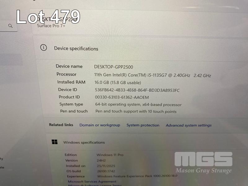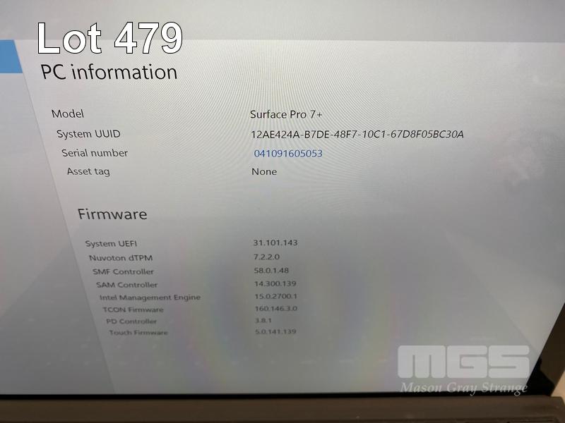 TABLET PC, MICROSOFT SURFACE PRO 7+, MODEL 1961, CORE i5 1135G7 (11TH GEN) @ 2.4GHz, 16GB DDR4 RAM, 256GB NVMe M.2 SSD, 12.3" TOUCHSCREEN (2736x1824), INTEL IRIS Xe GRAPHICS, Wi-Fi, CELLULAR, BLUETOOTH, WINDOWS 11 PRO INSTALLED, KEYBOARD TYPE COVER, CASE & POWER SUPPLY S/N:041091605053