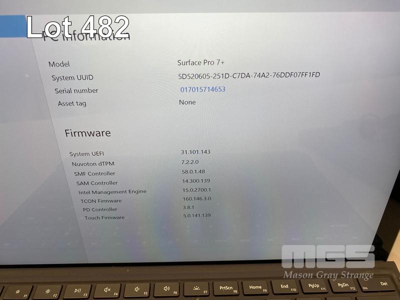 TABLET PC, MICROSOFT SURFACE PRO 7+, MODEL 1961, CORE i5 1135G7 (11TH GEN) @ 2.4GHz, 16GB DDR4 RAM, 256GB NVMe M.2 SSD, 12.3" TOUCHSCREEN (2736x1824), INTEL IRIS Xe GRAPHICS, Wi-Fi, CELLULAR, BLUETOOTH, WINDOWS 11 PRO INSTALLED, KEYBOARD TYPE COVER, CASE & POWER SUPPLY S/N:017015714653