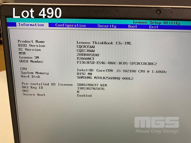 LAPTOP, LENOVO THINKBOOK 13s-IML, TYPE 20RR, CORE i5 10210U (10TH GEN) @ 1.6GHz, 8GB DDR4 RAM, 256GB NVMe M.2 SSD, 13.3" WIDESCREEN (1920x1080), INTEL UHD GRAPHICS, Wi-Fi, BLUETOOTH, WINDOWS 11 PRO INSTALLED & POWER SUPPLY (NOTE: MINOR DENT IN CASING) S/N:P20A0NCT