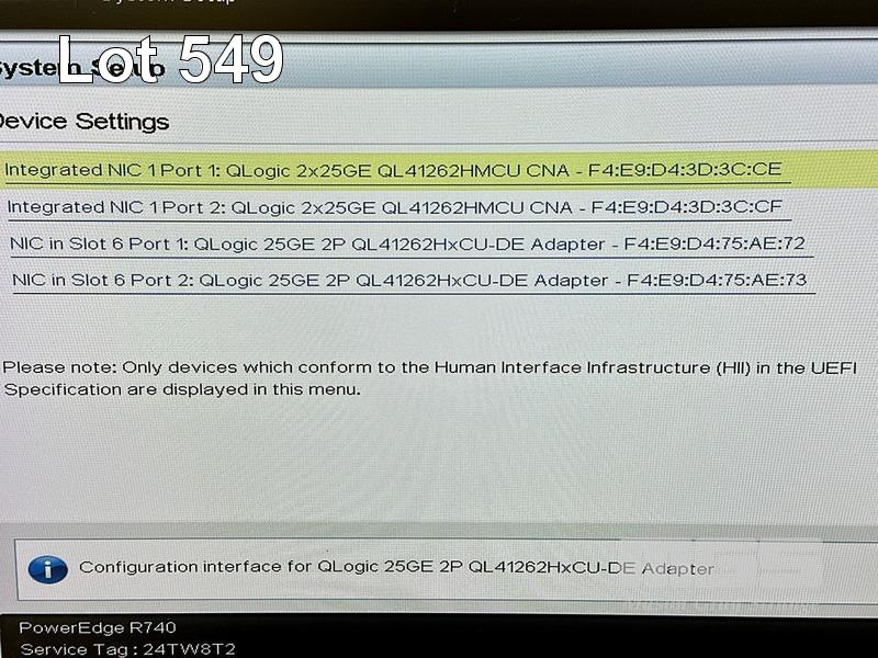 RACKMOUNT SERVER, DELL EMC POWEREDGE R740, 2U, 2 x XEON GOLD 6130 @ 2.1GHz, 384GB ECC DDR4 RAM (12x32GB), NO HDD, 2-PORT QLOGIC 25GE QL4126HxDU-DE ADAPTER, 2 x 1600W PSU WITH RAILS (NO CABLES) (NOTE: MESSAGE "INTERNAL DUAL SD MODULE REDUNDANCY") S/N:24TW8T2