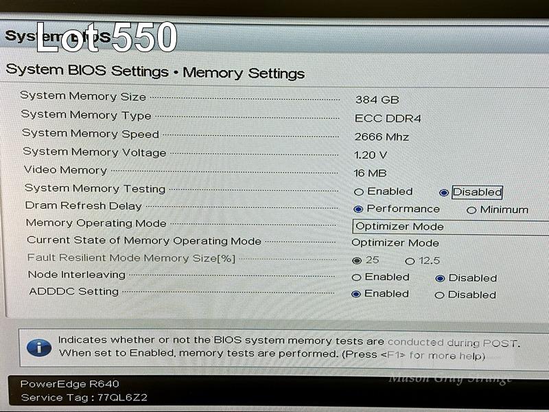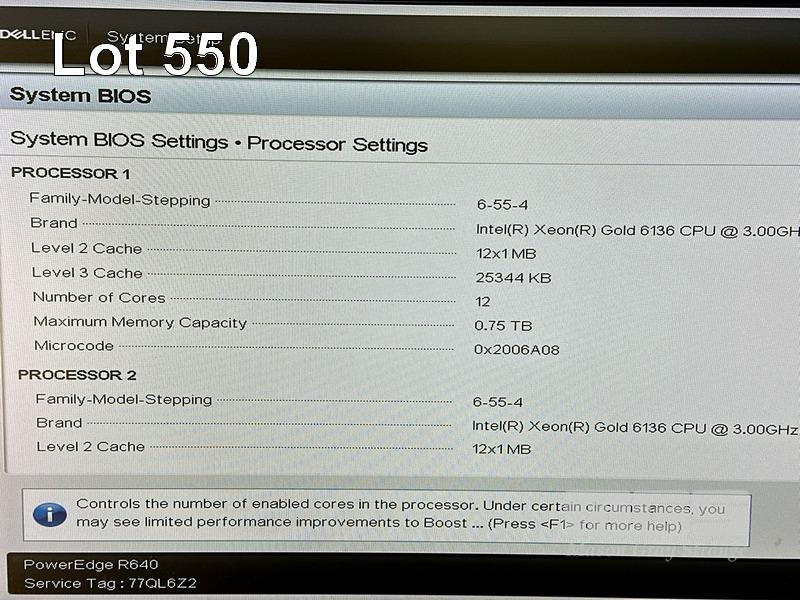 RACKMOUNT SERVER, DELL EMC POWEREDGE R640, 1U, 2 x XEON GOLD 6136 @ 3GHz, 384GB ECC DDR4 RAM (12x32GB), NO HDD, 2-PORT QLOGIC QLE2562 8Gb FIBRE CHANNEL, 2 x 750W PSU WITH RAILS (NO CABLES) S/N:77QL6Z2