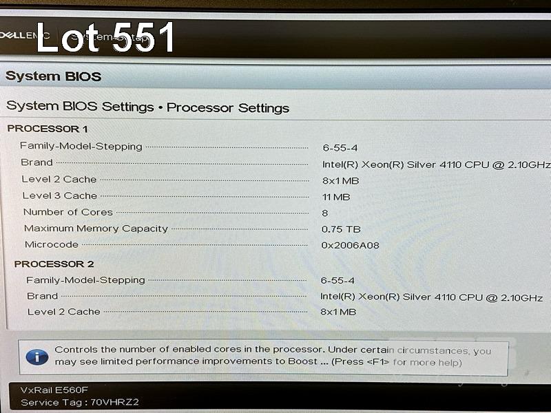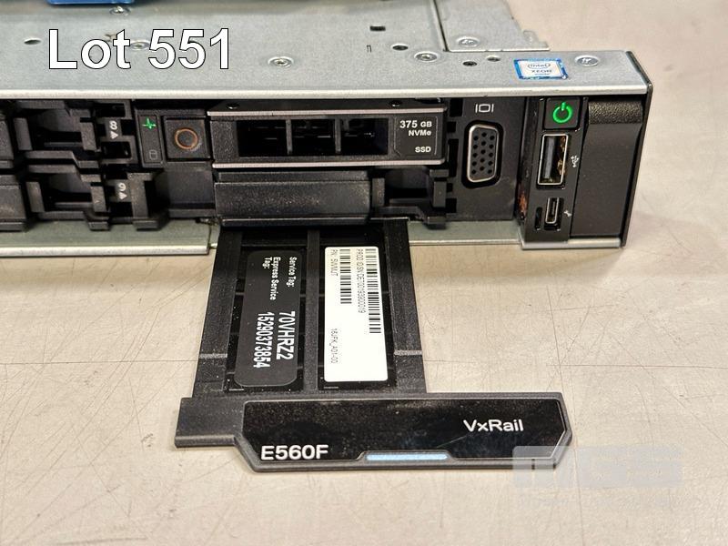 RACKMOUNT SERVER, DELL EMC VxRAIL E560F, 1U, 2 x XEON SILVER 4110 @ 2.1GHz, 192GB ECC DDR4 RAM (12x16GB), 2 x 1.92TB SAS SSD (12Gbps), 1 x 375GB NVMe SSD, BOSS CONTROLLER CARD (03JT49) WITH 2 x 240GB M.2 SSD, 2 x 1100W PSU WITH RAILS (NO CABLES) S/N:70VHRZ2