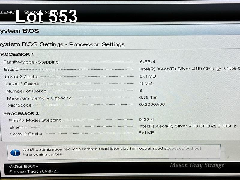 RACKMOUNT SERVER, DELL EMC VxRAIL E560F, 1U, 2 x XEON SILVER 4110 @ 2.1GHz, 192GB ECC DDR4 RAM (12x16GB), 2 x 1.92TB SAS SSD (12Gbps), 1 x 375GB NVMe SSD, BOSS CONTROLLER CARD (03JT49) WITH 2 x 240GB M.2 SSD, 2 x 1100W PSU WITH RAILS (NO CABLES) S/N:70VJRZ2