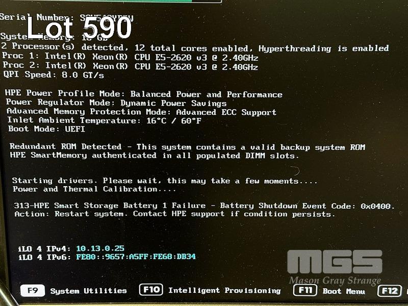 RACKMOUNT SERVER, HP PROLIANT DL380 Gen9, 2U, 2 x XEON E5-2620 v3 @ 2.4GHz, 16GB ECC DDR4 RAM, 14 x 600GB SAS HDD, 2 x 146GB SAS HDD, 2 x 500W PSU WITH RAILS (NO CABLES) (NOTE: MESSAGE "SMART STORAGE BATTERY 1 FAILURE") S/N:SGH543YPTW