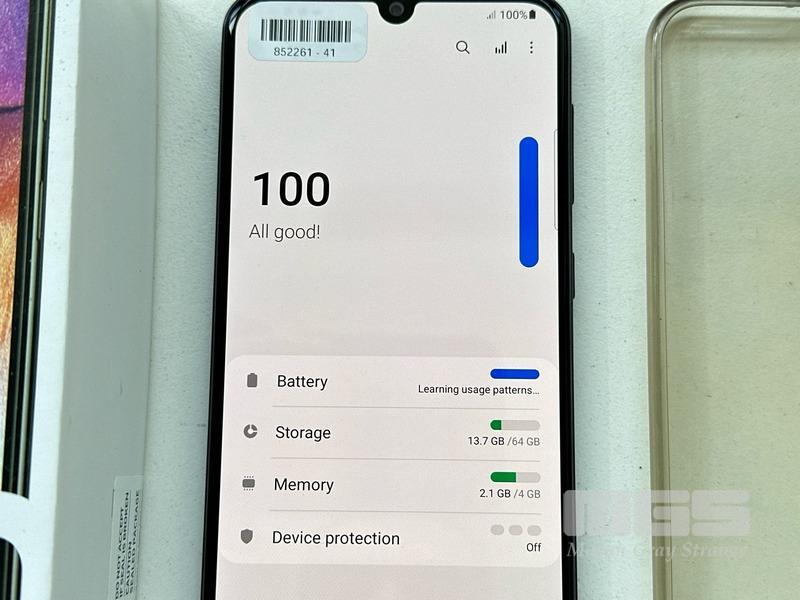 SAMSUNG GALAXY A50 SMARTPHONE, MODEL SM-A505YN, 64GB, WITH COVER, USB-C CABLE & CHARGER S/N:R58M61G5M0Y