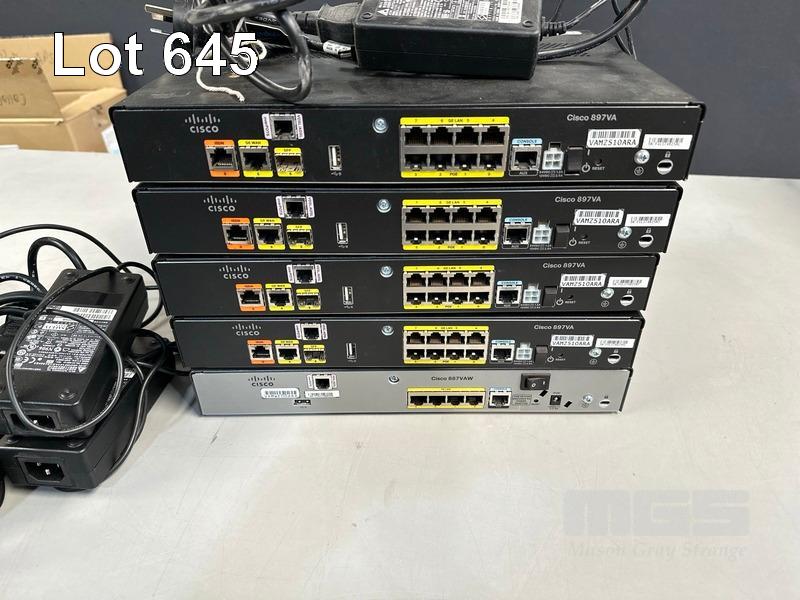 7 x CISCO 897VA INTEGRATED SERVICES ROUTERS, C897VA-K9 V01 1 x CISCO 887VAW INTEGRATED SERVICES ROUTERS, C887VA-W-A-K9 V01 (WITH 7 x POWER SUPPLIES) S/N:FGL174825AL, FGL174825AJ, FGL174825AF, FGL174825AG, FTX173885D9, FGL174825AD, FGL1749203J, FGL174825AK