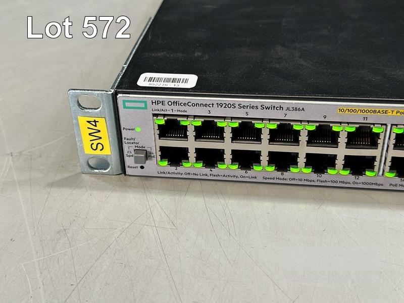 HPE OFFICECONNECT 1920S SERIES 48G 4SFP PPoE+ 370W NETWORK SWITCH, JL386A WITH NOTCH POWER CABLE S/N:CN81K3R1S4