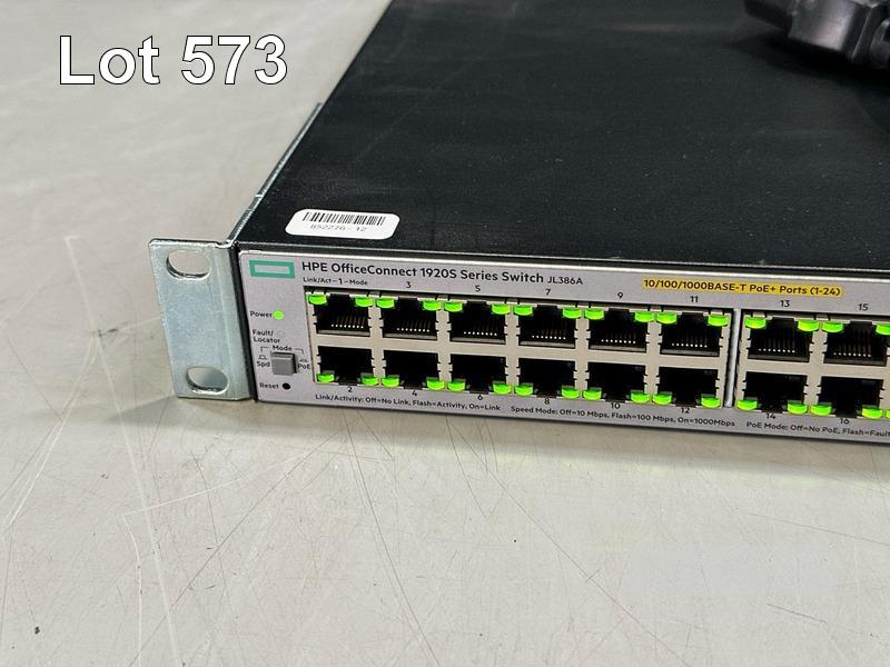 HPE OFFICECONNECT 1920S SERIES 48G 4SFP PPoE+ 370W NETWORK SWITCH, JL386A WITH NOTCH POWER CABLE S/N:CN81K3R1JL