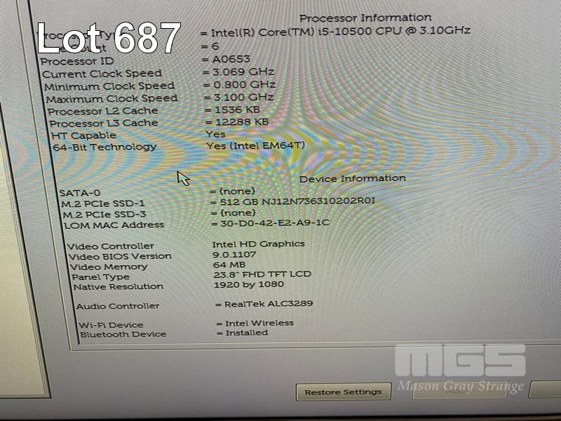 ALL-IN-ONE PC, DELL OPTIPLEX 7480, CORE i5 10500 (10TH GEN) @ 3.1GHz, 8GB DDR4 RAM, 512GB NVMe M.2 SSD, INBUILT 23.8" FHD WIDESCREEN (1920x1080), INTEL HD VIDEO, WEBCAM, 5 x USB, 1 x USB-C, Wi-Fi, BLUETOOTH, WINDOWS 11 HOME INSTALLED, KEYBOARD & MOUSE (NOTE: SCRATCH ON SCREEN) S/N:7KMWVD3