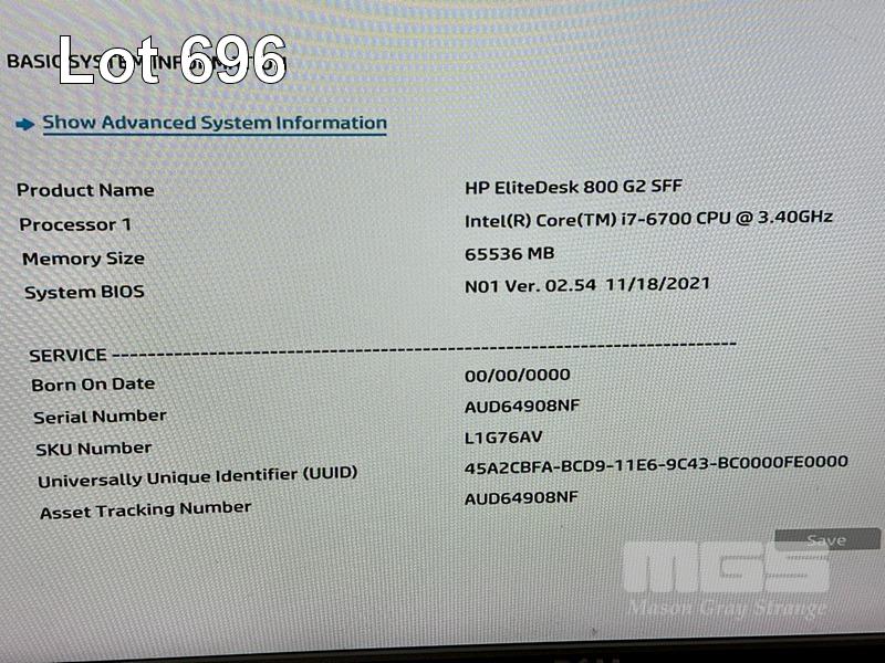 DESKTOP PC, HP ELITEDESK 800 G2 SFF, CORE i7 6700 (6TH GEN) @ 3.4GHz, 64GB DDR4 RAM, 480GB SSD, 512GB SSD, WINDOWS 10 HOME INSTALLED (NO KEYBOARD, NO MOUSE) (NOTE: NO HDDD CADDIES) S/N:AUD64908NF
