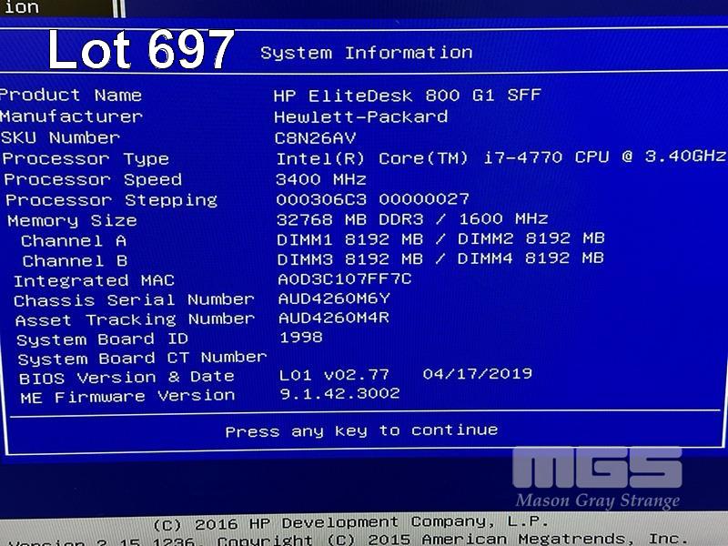 DESKTOP PC, HP ELITEDESK 800 G1 SFF, CORE i7 4770 (4TH GEN) @ 3.4GHz, 32GB RAM, 480GB SSD (NO KEYBOARD, NO MOUSE) S/N:AUD4260M6Y