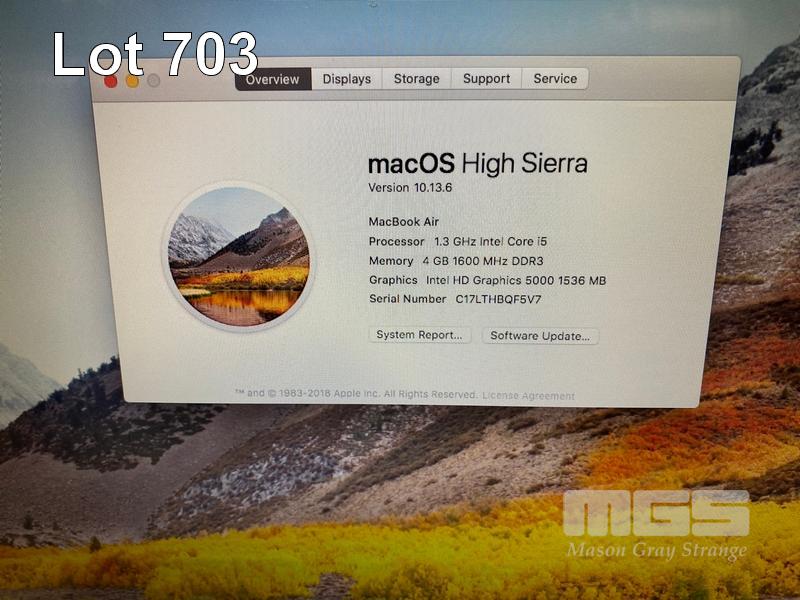 LAPTOP, APPLE MACBOOK AIR (A1466), CORE i5 4250U (4TH GEN) @ 1.3GHz, 4GB DDR3 RAM, 128GB SSD, 13.3" DISPLAY (1440x900), INTEL HD GRAPHICS 6000, Wi-Fi, BLUETOOTH, MAC OS 10.13 INSTALLED & POWER SUPPLY S/N:C17LTHBQF5V7