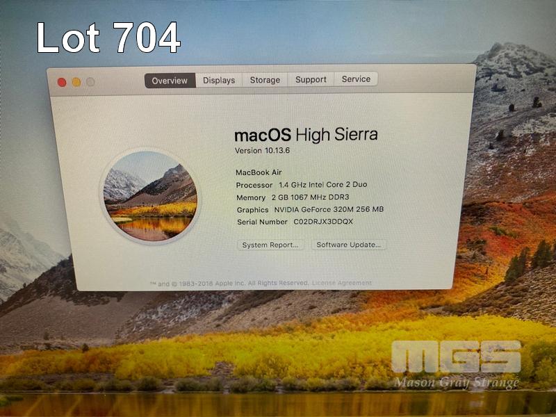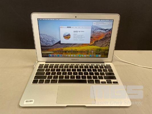 LAPTOP, APPLE MACBOOK AIR (A1370), CORE 2 DUO SU9400 @ 1.4GHz, 2GB DDR3 RAM, 64GB SSD, 11.6" WIDESCREEN (1366x768), INTEL HD GRAPHICS 3000, Wi-Fi, BLUETOOTH, MAC OS 10.13 INSTALLED & POWER SUPPLY (NOTE: BATTERY NOT CHARGING) S/N:C02DRJX3DDQX
