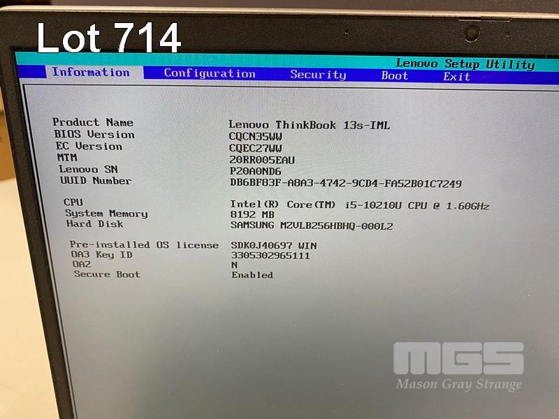 LAPTOP, LENOVO THINKBOOK 13s-IML, TYPE 20RR, CORE i5 10210U (10TH GEN) @ 1.6GHz, 8GB DDR4 RAM, 256GB NVMe M.2 SSD, 13.3" WIDESCREEN (1920x1080), INTEL UHD GRAPHICS, Wi-Fi, BLUETOOTH, WINDOWS 11 PRO INSTALLED & POWER SUPPLY (NOTE: CASING DAMAGE - ALL CORNERS) S/N:P20A0ND6