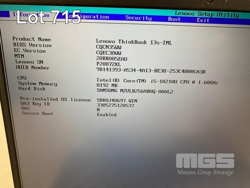 LAPTOP, LENOVO THINKBOOK 13s-IML, TYPE 20RR, CORE i5 10210U (10TH GEN) @ 1.6GHz, 8GB DDR4 RAM, 256GB NVMe M.2 SSD, 13.3" WIDESCREEN (1920x1080), INTEL UHD GRAPHICS, Wi-Fi, BLUETOOTH, WINDOWS 11 PRO INSTALLED & POWER SUPPLY (NOTE: MINOR DENT IN CASING) S/N:P2087ZKL