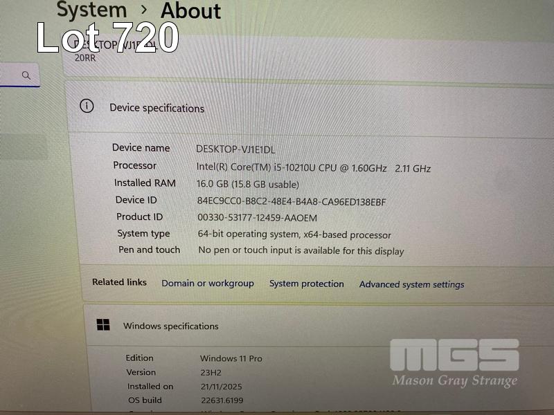 LAPTOP, LENOVO THINKBOOK 13s-IML, TYPE 20RR, CORE i5 10210U (10TH GEN) @ 1.6GHz, 16GB DDR4 RAM, 256GB NVMe M.2 SSD, 13.3" WIDESCREEN (1920x1080), INTEL UHD GRAPHICS, Wi-Fi, BLUETOOTH, WINDOWS 11 PRO INSTALLED & POWER SUPPLY (NOTE: TOUCHPAD FAULTY, STICKERS ON CASING) S/N:R90ZRVX8