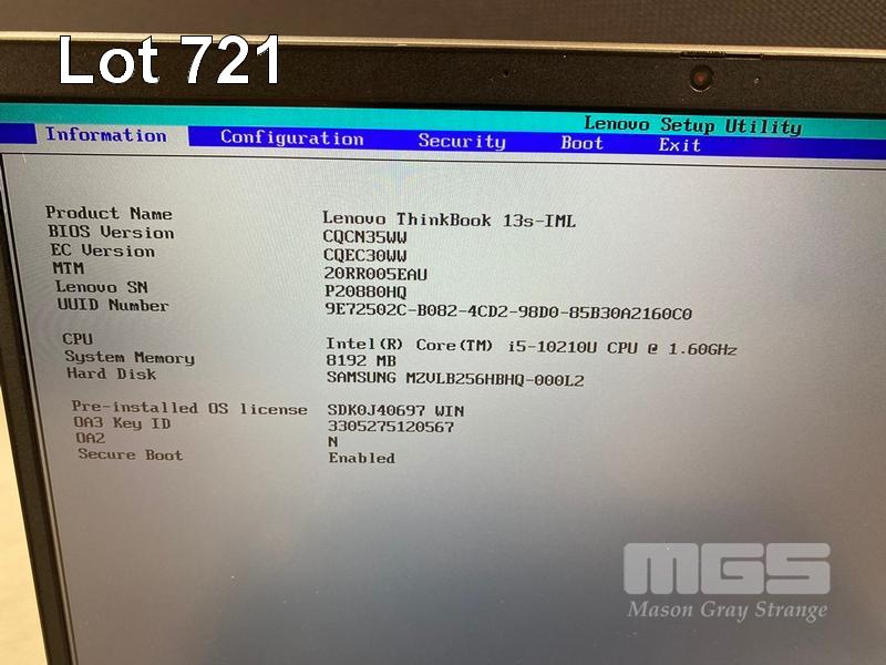 LAPTOP, LENOVO THINKBOOK 13s-IML, TYPE 20RR, CORE i5 10210U (10TH GEN) @ 1.6GHz, 8GB DDR4 RAM, 256GB NVMe M.2 SSD, 13.3" WIDESCREEN (1920x1080), INTEL UHD GRAPHICS, Wi-Fi, BLUETOOTH, WINDOWS 11 PRO INSTALLED & POWER SUPPLY (NOTE: BATTERY NOT CHARGING) S/N:P20880HQ