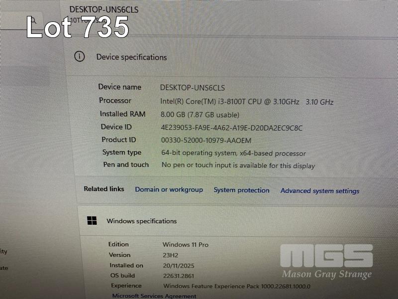 TINY-IN-ONE PC, LENOVO THINKCENTRE M720q, TYPE 10T7, CORE i3 8100T (8TH GEN) @ 3.1GHz, 8GB DDR4 RAM, 256GB NVMe M.2 SSD, LENOVO TIO24Gen3 23.8" LED-BL LCD WIDESCREEN, WEBCAM, Wi-Fi, BLUETOOTH, WINDOWS 11 PRO INSTALLED, KEYBOARD, MOUSE & POWER SUPPLY S/N:PC155FGJ