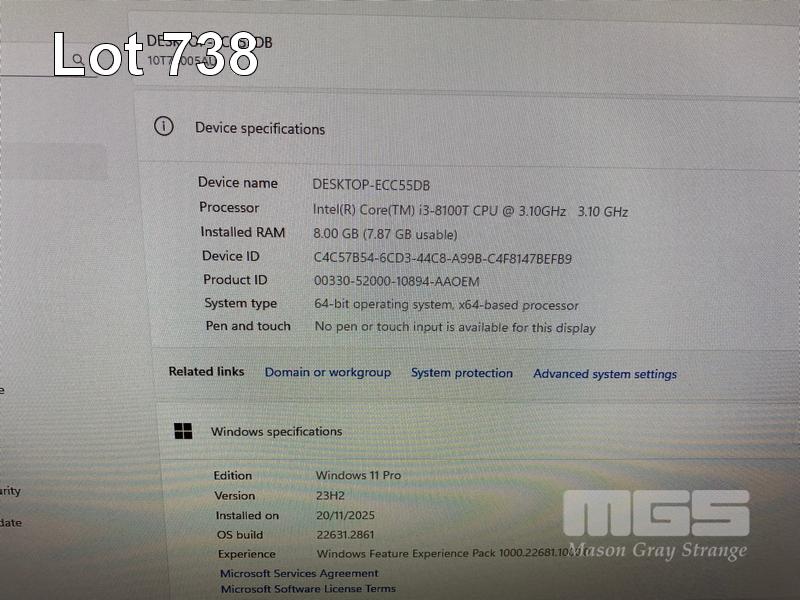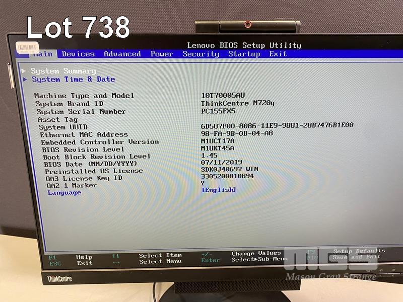 TINY-IN-ONE PC, LENOVO THINKCENTRE M720q, TYPE 10T7, CORE i3 8100T (8TH GEN) @ 3.1GHz, 8GB DDR4 RAM, 256GB NVMe M.2 SSD, LENOVO TIO24Gen3 23.8" LED-BL LCD WIDESCREEN, WEBCAM, Wi-Fi, BLUETOOTH, WINDOWS 11 PRO INSTALLED, KEYBOARD, MOUSE & POWER SUPPLY S/N:PC155FX5