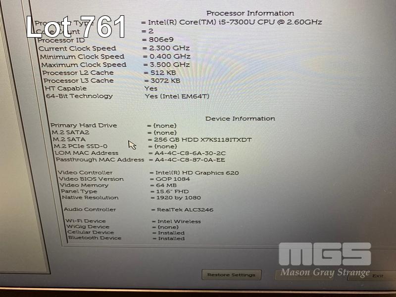 LAPTOP, DELL LATITUDE 5580, CORE i5 7300U (7TH GEN) @ 2.6GHz, 8GB DDR4 RAM, 256GB M.2 SSD, 15.6" WIDESCREEN (1920x1080), INTEL HD GRAPHICS 620, Wi-Fi, CELLULAR, BLUETOOTH, WINDOWS 10 PRO INSTALLED & POWER SUPPLY (NOTE: BATTERY NOT HOLDING CHARGE, SPOT ON SCREEN) S/N:JZ4LPH2