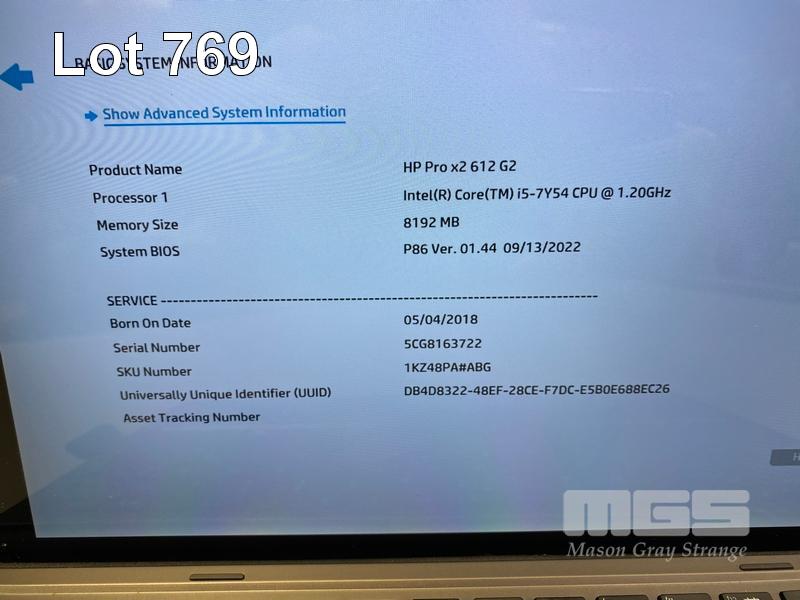 TABLET PC, HP PRO x2 612 G2, CORE i5 7Y54 (7TH GEN) @ 1.2GHz, 8GB RAM, 256GB NVMe M.2 SSD, 12.5" TOUCHSCREEN (1920x1080), Wi-Fi, CELLULAR, BLUETOOTH, WINDOWS 10 PRO INSTALLED, KEYBOARD (NO USB-C POWER SUPPLY) S/N:5CG8163722