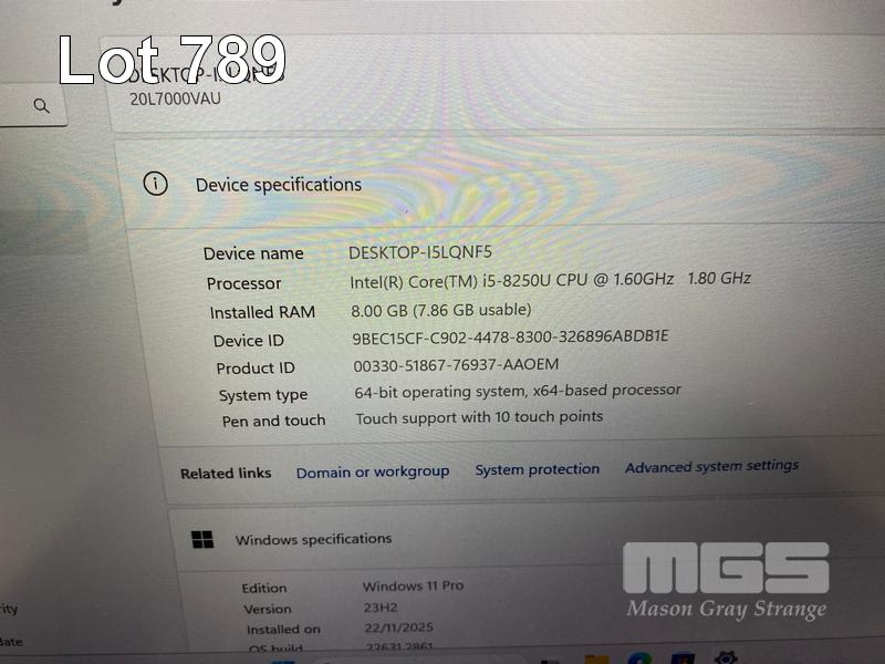 LAPTOP, LENOVO THINKPAD T480s, TYPE 20L7, CORE i5 8250U (8TH GEN) @ 1.6GHz, 8GB DDR4 RAM, 256GB NVMe M.2 SSD, 14" TOUCHSCREEN (1920x1080), INTEL HD VIDEO, Wi-Fi, BLUETOOTH, WINDOWS 11 PRO INSTALLED (NO USB-C POWER SUPPLY) (NOTE: MARKS ON SCREEN, STICKERS ON CASING) S/N:PC13NYBN