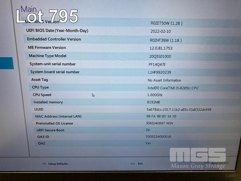 LAPTOP, LENOVO THINKPAD L490, TYPE 20Q5, CORE i5 8265U (8TH GEN) @ 1.6GHz, 8GB DDR4 RAM, 256GB NVMe M.2 SSD, 14" WIDESCREEN (1920x1080), INTEL UHD GRAPHICS, Wi-Fi, BLUETOOTH, WINDOWS 11 PRO INSTALLED (NO USB-C POWER SUPPLY) S/N:PF14Q47E