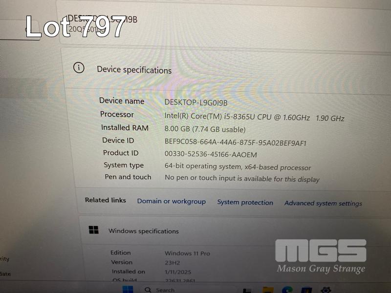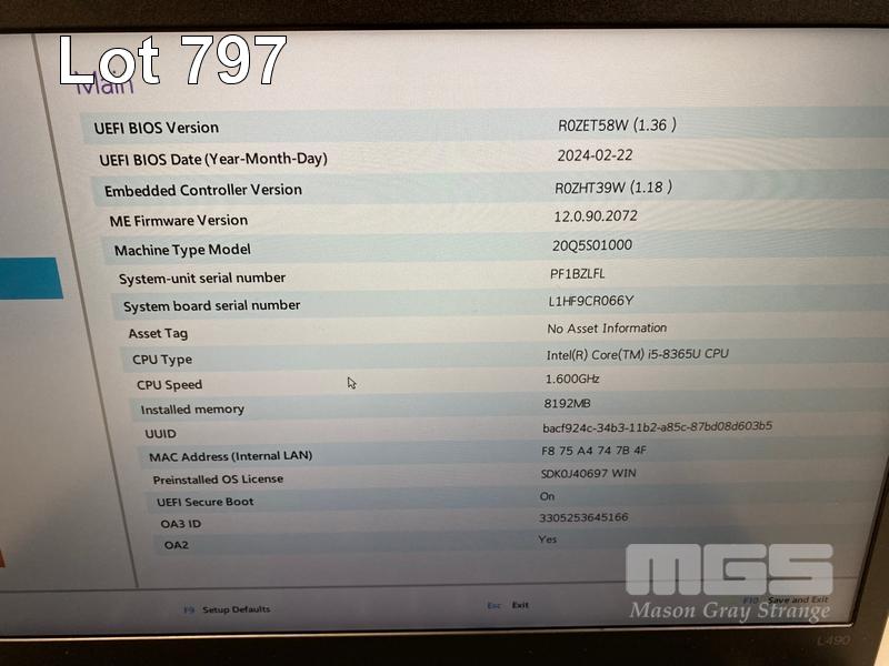LAPTOP, LENOVO THINKPAD L490, TYPE 20Q5, CORE i5 8365U (8TH GEN) @ 1.6GHz, 8GB DDR4 RAM, 256GB NVMe M.2 SSD, 14" WIDESCREEN (1920x1080), INTEL UHD GRAPHICS, Wi-Fi, BLUETOOTH, WINDOWS 11 PRO INSTALLED (NO USB-C POWER SUPPLY) (NOTE: MARKS & SPOT ON SCREEN) S/N:PF1BZLFL