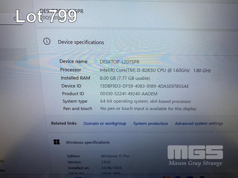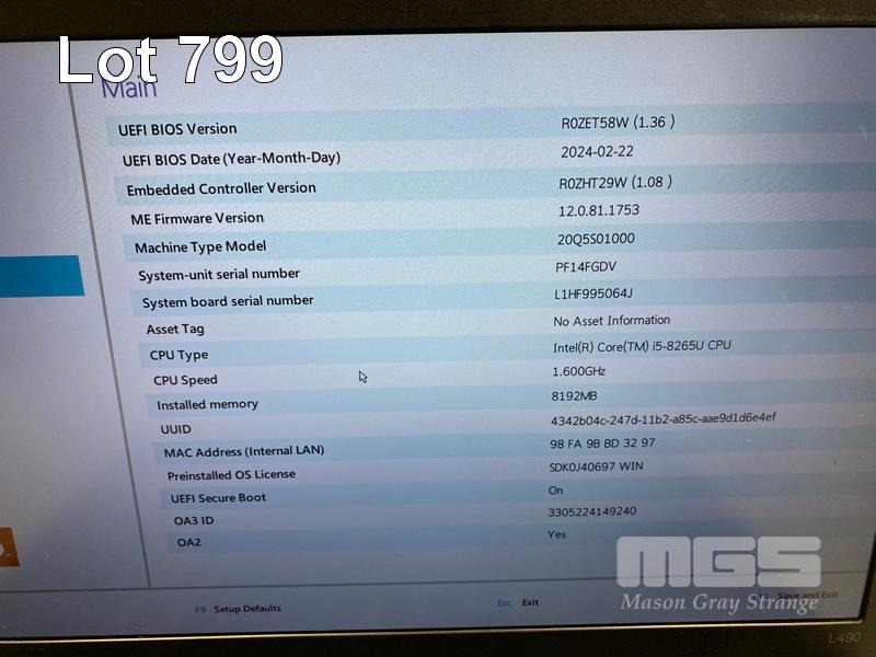 LAPTOP, LENOVO THINKPAD L490, TYPE 20Q5, CORE i5 8365U (8TH GEN) @ 1.6GHz, 8GB DDR4 RAM, 256GB NVMe M.2 SSD, 14" WIDESCREEN (1920x1080), INTEL UHD GRAPHICS, Wi-Fi, BLUETOOTH, WINDOWS 11 PRO INSTALLED (NO USB-C POWER SUPPLY) (NOTE: DAMAGE TO CASING, MARKS ON SCREEN) S/N:PF14FGDV
