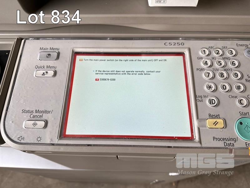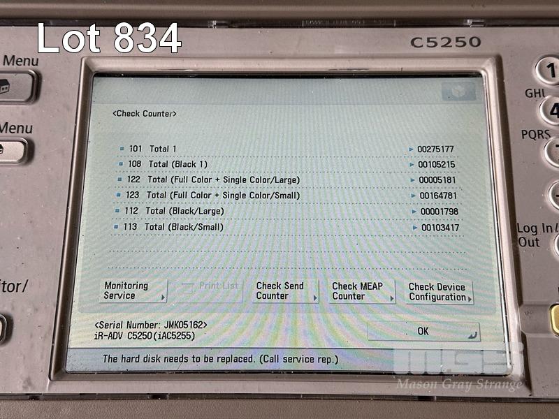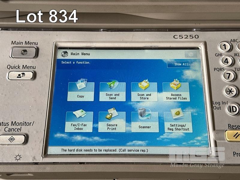 PHOTOCOPIER, CANON imageRUNNER ADVANCE C5250 COLOUR DIGITAL, ADF, PRINTER USB & NETWORK PORTS, 169,962 COLOUR & 105,215 B&W COPIES SHOWING (TEST PAGE UNAVAILABLE) WITH SPARE TONER CARTRIDGES (NOTE: HARD DISK NEEDS TO BE REPLACED MESSAGE, ERROR CODE E000674-0200) S/N:JMK05162