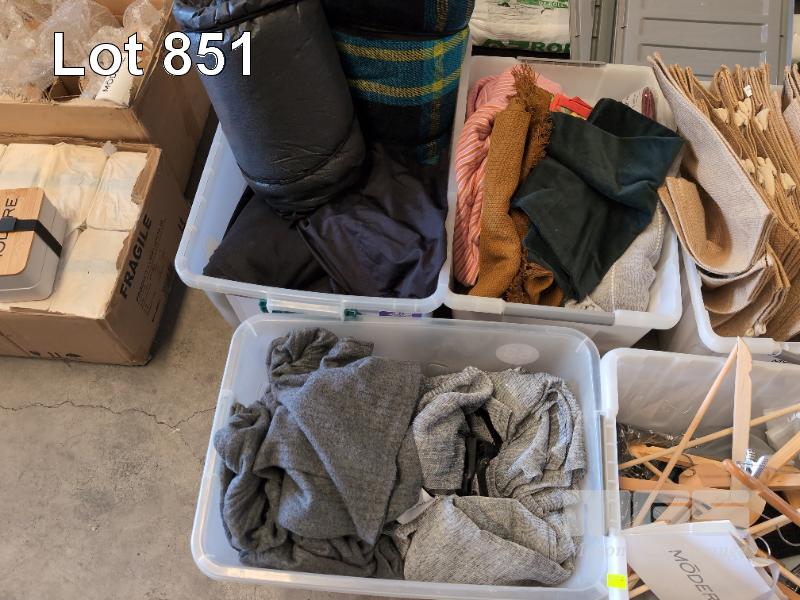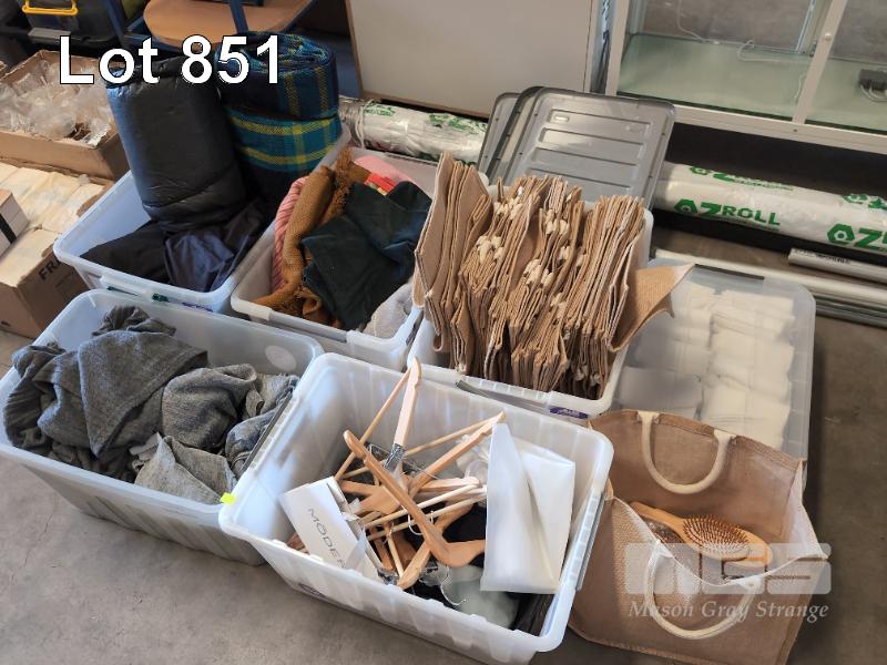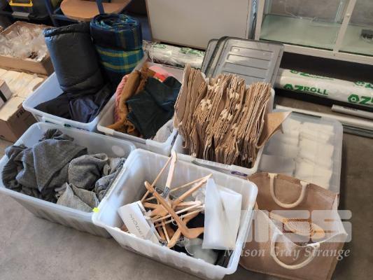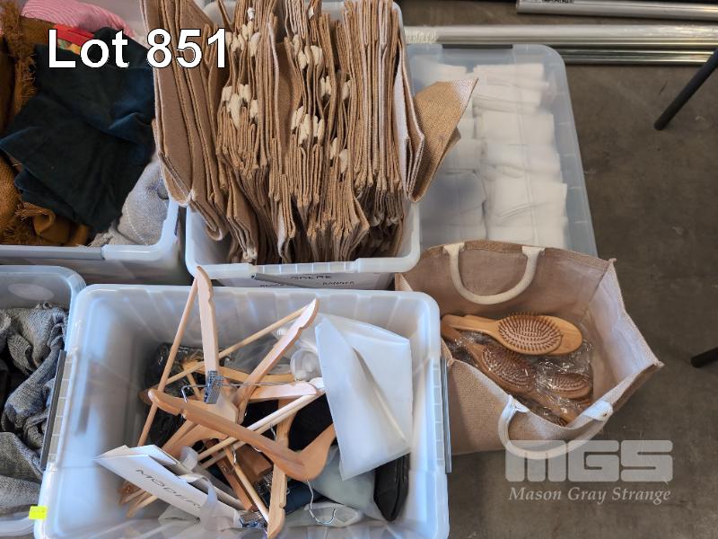 CURTAINS, TABLECLOTHS, PICNIC BLANKETS & HAND TOWELS. QTY HAIR BRUSHES. QTY HESSIAN SHOPPING BAGS. ETC