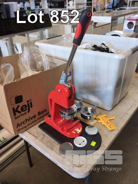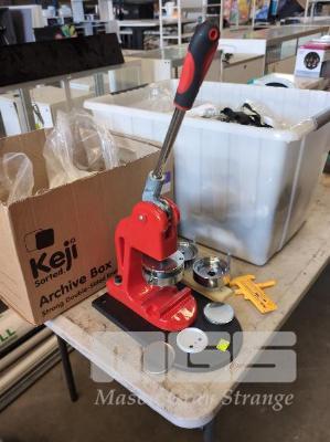 BADGE/BUTTON PRESS & SUPPLIES AND BULK QTY LANYARDS.