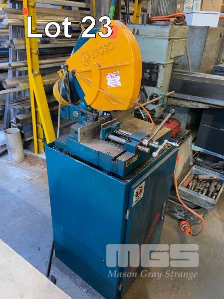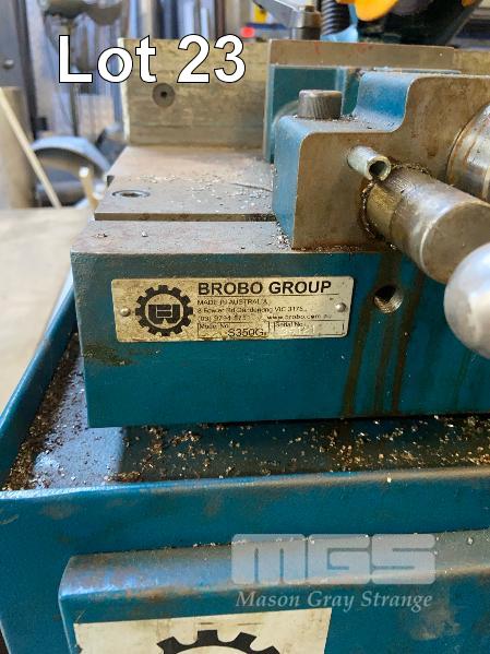 COLD SAW, BROBO 350mm BLADE 2 SPEED COOLANT SYSTEM, 415V QUICK ACTION VICE, SWIVEL HEAD, STOP BAR GENUINE BROBO STAND