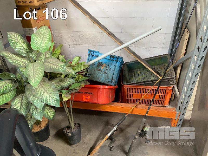 2 x FISHING RODS, 2 x PLASTIC PLANTS & 6 x PLASTIC TUBS