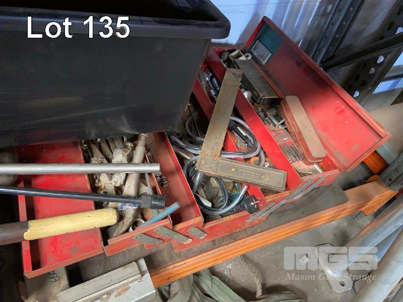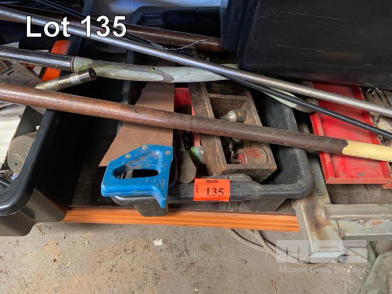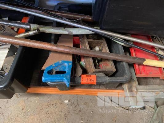 HAND TOOLS, TOOL BOX, BOLT CUTTERS, STEEL SQUARES, SHOVEL/FORK, HEX KEYS & MORE CONTENTS LOWER SHELF